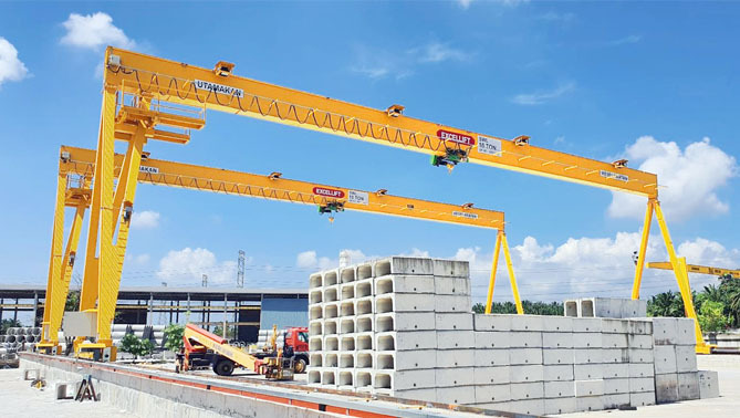 EXCELLIFT龍門起重機解決方案是為了滿足在沒有當前跑道結構或建筑物支撐該結構的戶外或室內應用的起重需求而設計制造,產品分為單梁和雙梁龍門起重機,以無頂棚的起重機居多,更加實用和經濟,可在極端惡劣戶外條件下高效作業。